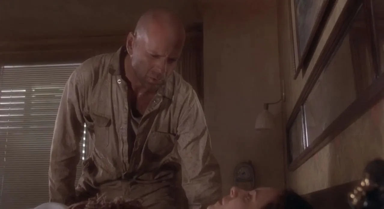 Cast: Bruce Willis as James Cole, Madeleine Stowe as Dr. Kathryn Railly, Brad Pitt as Jeffrey Goines, Christopher Plummer as Dr. Goines, David Morse as Dr. Peters, Jon Seda as Jose, Christopher Meloni as Lt. Halperin, Joey Perillo as Detective Franki, LisaGay Hamilton as Teddy, Matt Ross as Bee, Annie Golden as Woman Cabbie, Michael Chance as Scarface, H. Michael Walls as Botanist, Bob Adrian as Geologist, Bill Raymond as Microbiologist, Ernest Abuba as Engineer, Nell Johnson as Ward Nurse, Rozwill Young as Billings, Joseph Melito as Young Cole, Frank Gorshin as Dr. Fletcher, Aaron Michael Lacey as WWI Sergeant, Vernon Campbell as Tiny, Simon Jones as Zoologist, Carol Florence as Astrophysicist / Jones, Irma St. Paule as Poet, Frederick Strother as L.J. Washington, Charles Techman as Professor, Rick Warner as Dr. Casey, Anthony 'Chip' Brienza as Dr. Goodin, Bruce Kirkpatrick as Policeman No. 1, Wilfred Williams as Policeman No. 2, Joilet Harris as Harassed Mother, Drucie McDaniel as Waltzing Woman Patient, John Blaisse as Old Man Patient, Louis Lippa as Patient at Gate, Stan Kang as X-Ray Doctor, Pat Dias as WWI Captain, Felix Pire as Fale, Karl Warren as Pompous Man, Joseph McKenna as Wallace, Stephen Bridgewater as Airport Detective, Ray Huffman as Plump Businessman, Charley Scalies as Impatient Traveler, Paul Meshejian as Detective Dalva, Kevin Thigpen as Kweskin, Jann Ellis as Marilou, Michael Ryan Segal as Weller, Korchenko as Thug No. 1, Robert O'Neill as Wayne, Harry O'Toole as Louie / Raspy Voice, Chuck Jeffreys as Thug No. 2, Barry Price as Agent No. 1, John Panzarella as Agent No. 2, Janet Zappala as Anchorwoman, Lisa Talerico as Ticket Agent, Tiffany Baldwin as Student in Airport (uncredited), C.J. Byrnes as Psychiatric Patient (uncredited), Tom Detrik as FBI Agent (uncredited), Joe Gerety as Sprayer (uncredited), Renee Spei as Demon (uncredited), Bonnie Loev as Time Portal Nurse (uncredited), Raymond Mamrak as Travler (uncredited), Allelon Ruggiero as Inpatient (uncredited), Thang as Monkey Member (uncredited), Sal Mazzotta as Prisoner Joey (uncredited), Bart The Bear as Bear